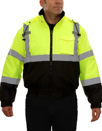 Jaket Bomber Safety Hi-Vis dari TRAHUM adalah jaket keselamatan premium yang dirancang untuk meningkatkan visibilitas dan perlindungan pengguna dalam berbagai kondisi kerja dan cuaca.